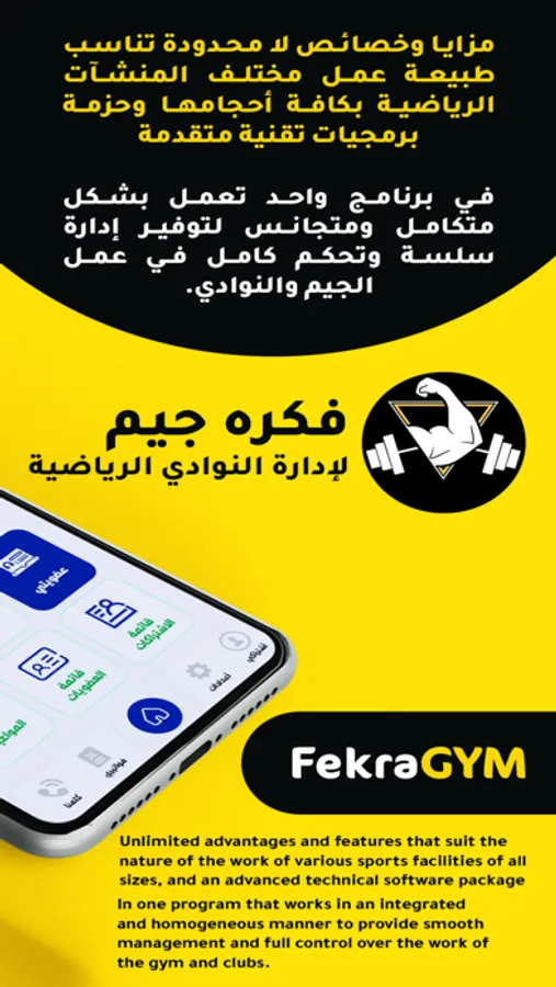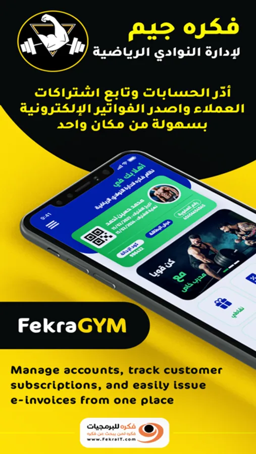 The FekraGYM Management Program for gymnasiums and sports clubs, is a cloud integrated paid system that works online Cloud-Based ERP Sports aims to facilitate the process of following your customers professionally, It saves you effort and time in tracking their subscriptions and the ease of issuing their bills and effectively manage their purchases of products and supplements and their movement in your inventory, Also, you will be able with the idea of Jim to follow up and manage your staff of trainers, sales, marketing and other officials and integrated management of e-gate devices of the type.