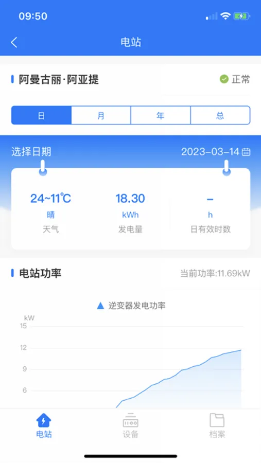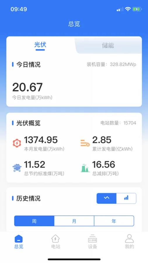 用户可以查询电站以及设备的发电、储能充放电等运行情况,对电站进行实时监测。同时可以从日、月、年不同时间维度查询电站的历史运行情况,清晰掌握电站的所有运行信息。