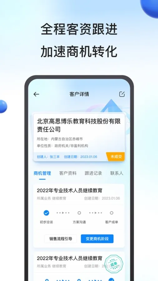 鹰眼助手致力于为广大销售人员提供便捷,易操作的客户管理工具。帮助销售精准留存客户资料,实现商机有效流转与促进销售业绩达成。
