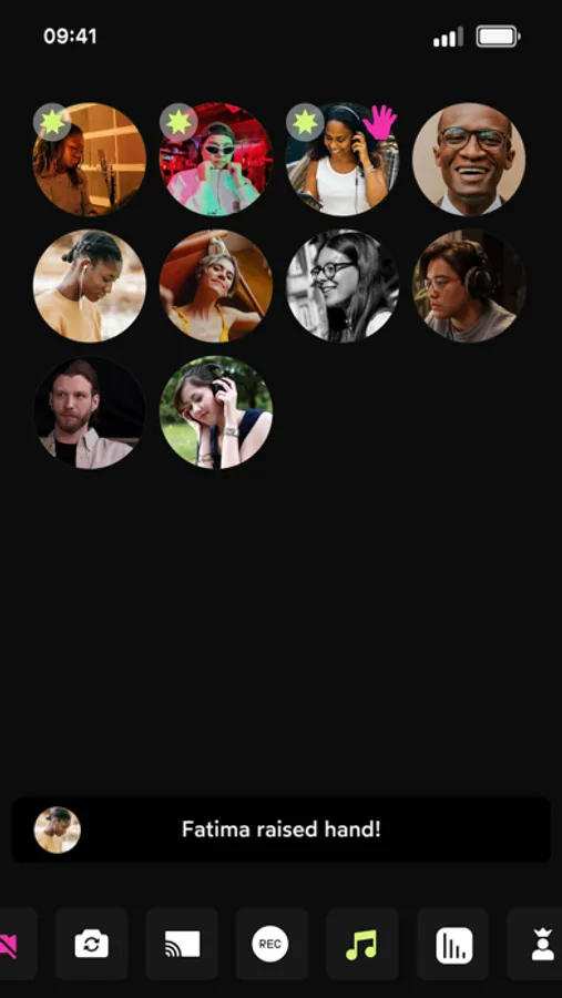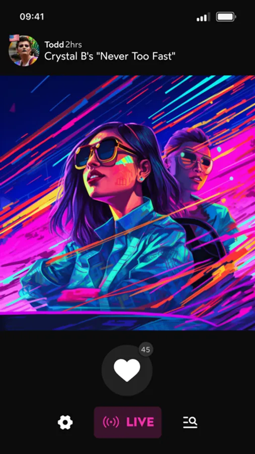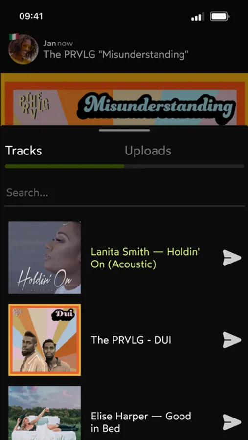Post songs to share your mood. Discover new artists shared by others. Connect live with others listening to the same artists online.