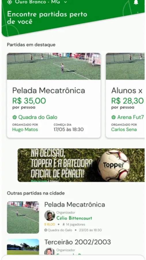 Marque partidas abertas e fechadas, descubra partidas rolando na cidade, siga os amigos.