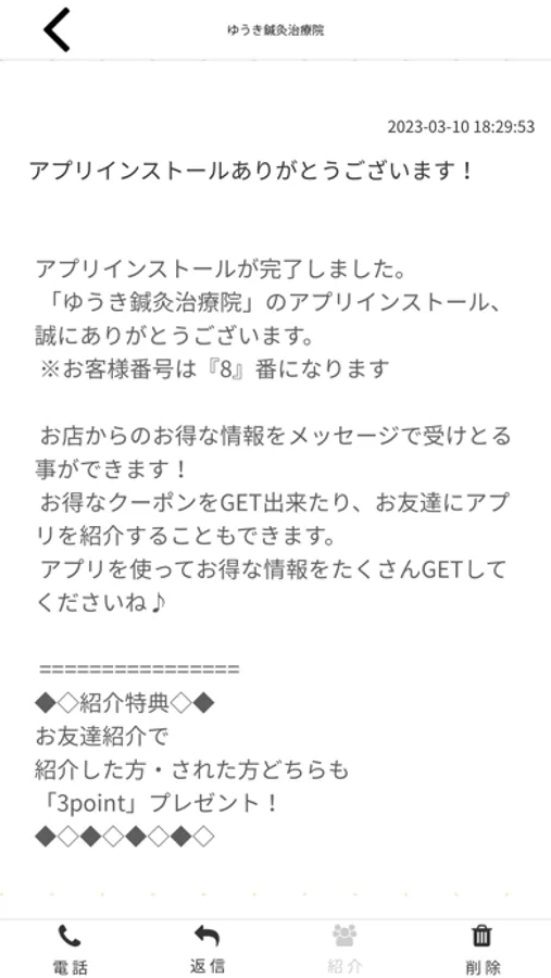ゆうき治療院のアプリをSNSを通じてお友達に紹介する事ができます。