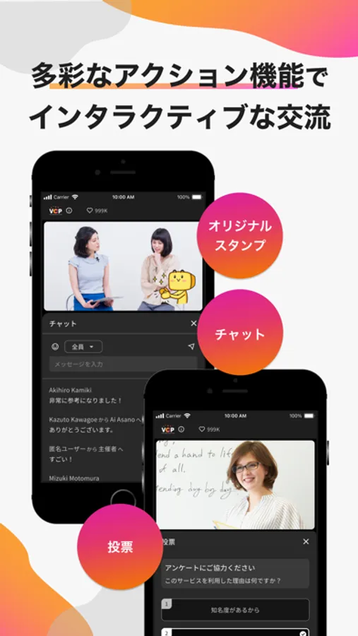 本アプリを使用して、スマートフォンやタブレットから「VCP(V-CUBE Communication Platform)」の配信・通話に参加できます。