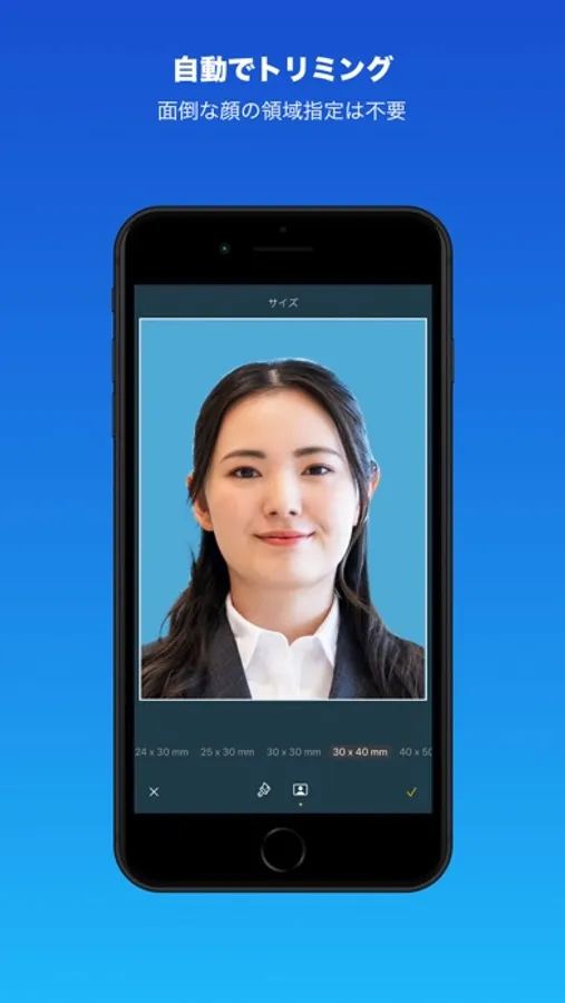 - This app automatically recognizes faces and trims them to the specified photo size.