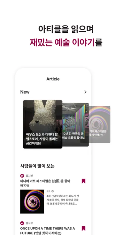 예술가들이 직접 작성한 아티클에서 그들의 철학과 사상을 엿보고, 예술을 딱딱하지 않고 재미있게 접해보세요.