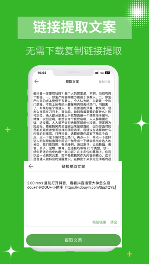 视频转文字是一款包含视频提取文案,短视频链接提取文案,以及短视频链接提取视频和文案提词器软件,可以轻松提取视频中的文字、短视频链接中的视频、使用提取文案进行悬浮提词拍摄功能。充分满足您的使用需求。是您进行视频创作、商务办公、学习记录等不可或缺的软件。