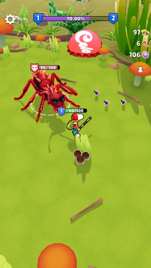 Your mission is to find your original size, capture new territory and fight against hordes of giant insects, including menacing ants, agile mantises, and formidable spiders. Use your wits and reflexes to dodge their attacks and strike back with powerful weapons.