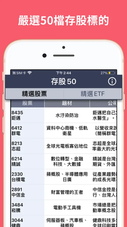 1. 今周刊的專業編輯團隊嚴選的50檔個股