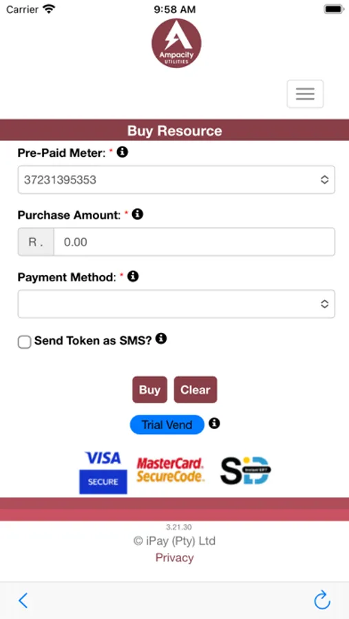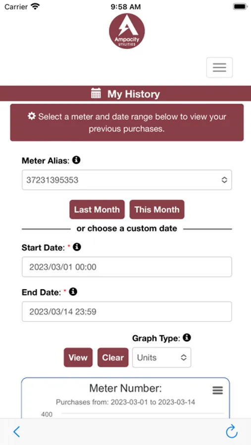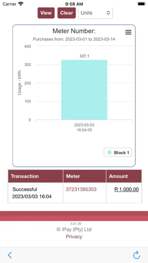 The prepaid purchases function allows users to buy tokens online as well pay for their resources from anywhere is the world. History of previous purchases is stored, giving the user insight into their purchasing patterns which is depicted on a graph.