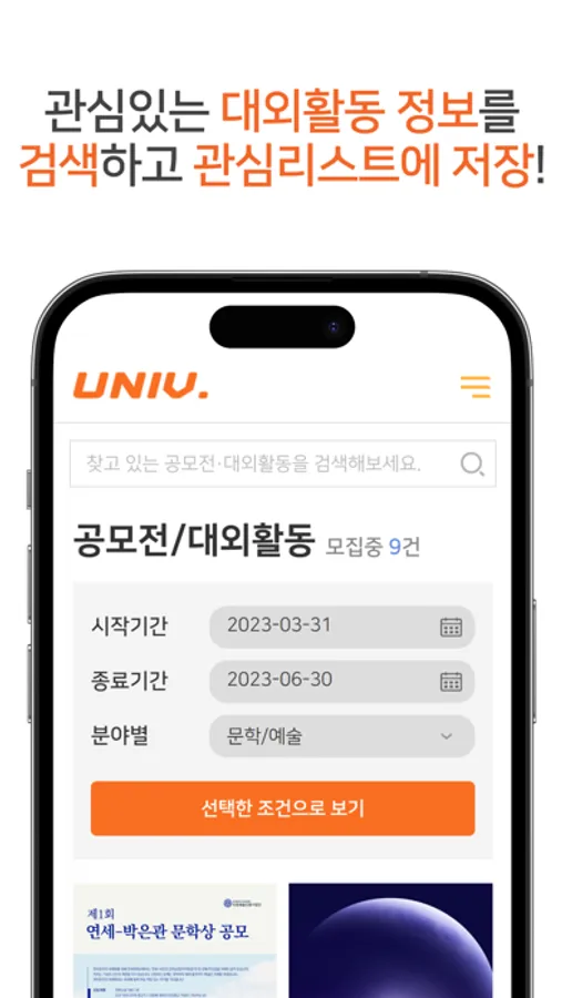 - 취업은 결국 경험 많은 자가 승리! 학교 바깥에서 이루어지는 최신 공모전 & 대외활동 정보 야무지게 챙기세요!