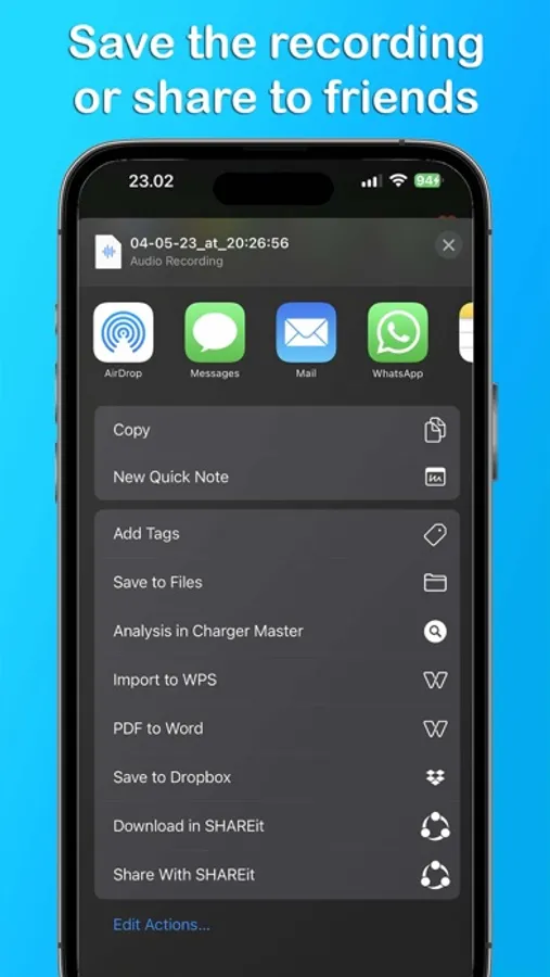 Save the recorded audio to Files or share the recorded audio with your friends easily