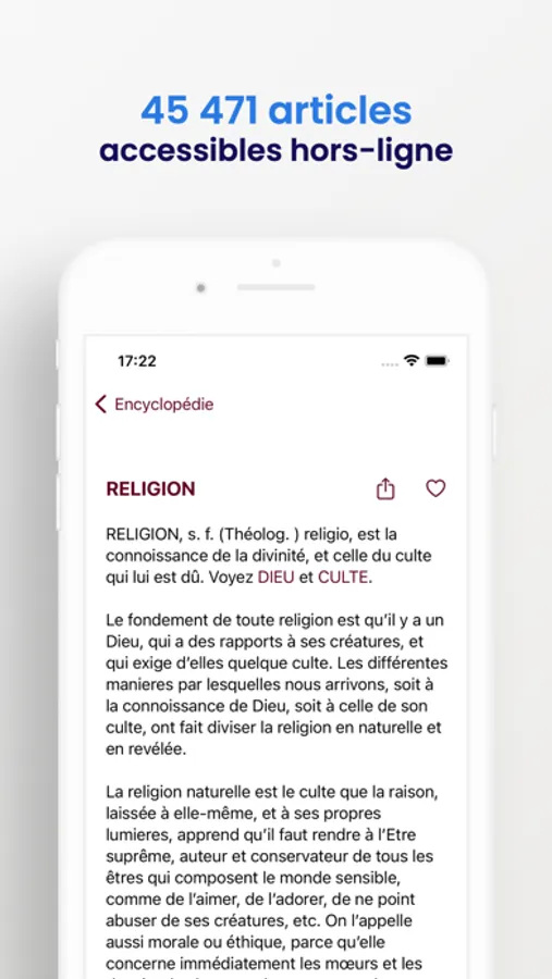 Cette application contient l’intégralité de l’Encyclopédie avec 45 471 entrées.