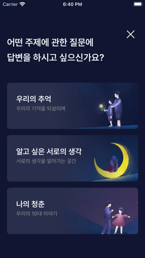 일편마다는 대화가 가장 필요하지만, 가장 속마음을 털어놓기 어려운 사이인 부모와 자녀를 타켓으로 잡았습니다.