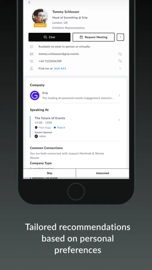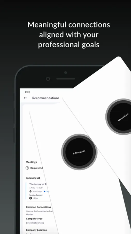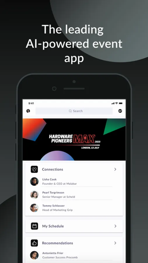 In addition with the help of AI matchmaking the event app personalises your experience suggesting exhibitors, speakers, sessions, products, services and attendees that are tailored to your industry and preferences.