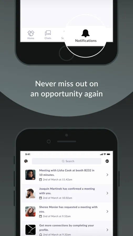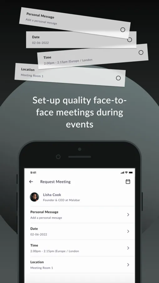 Arrange 1-1 meetings with exhibitors, speakers and any other attendees.