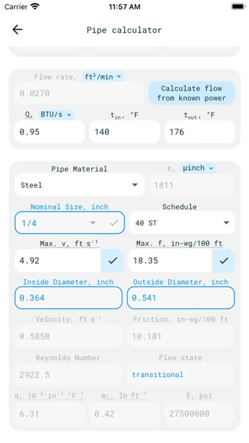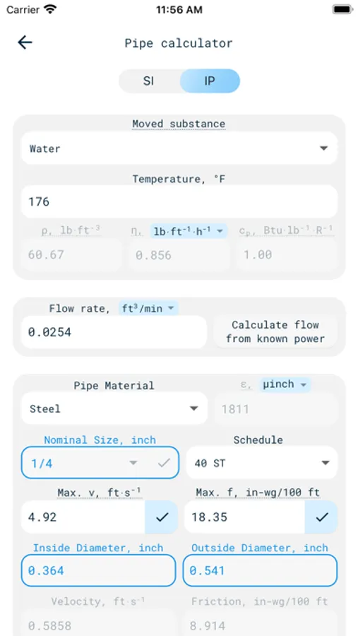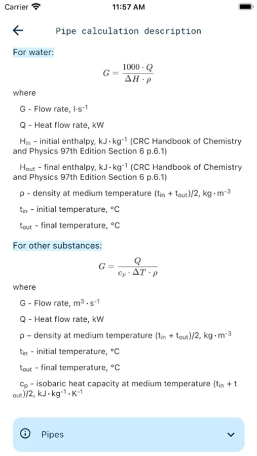 Pipe Calculator - this module is used to calculate velocity and pressure loss in pipelines and to select pipeline diameters for a given maximum velocity and pressure loss. It can also be used as a reference for heat transfer fluid properties and pipe characteristics.