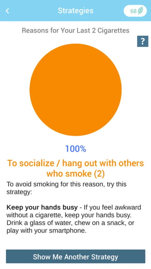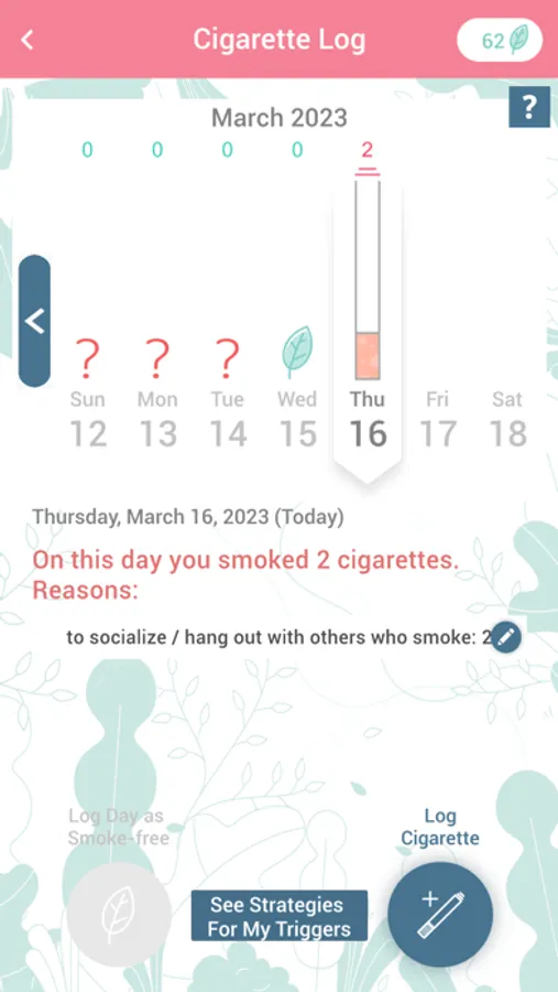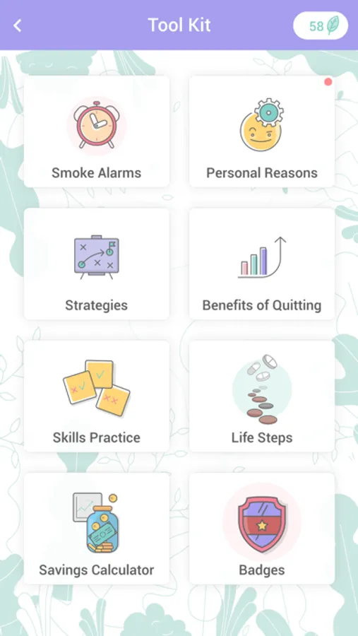 - Complete a specific task using one of the app’s tools. These tasks include, for example, specifying your personal reasons for quitting smoking, browsing strategies to overcome your smoking triggers, learning about benefits of quitting smoking, practicing to resist the urge to smoke, seeing how much money you saved by not smoking, etc.