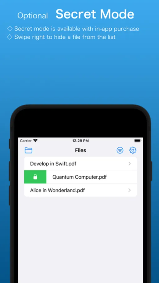 - Hidden files can be displayed only when the top left button is pressed, preventing file names from being seen by peeking from behind