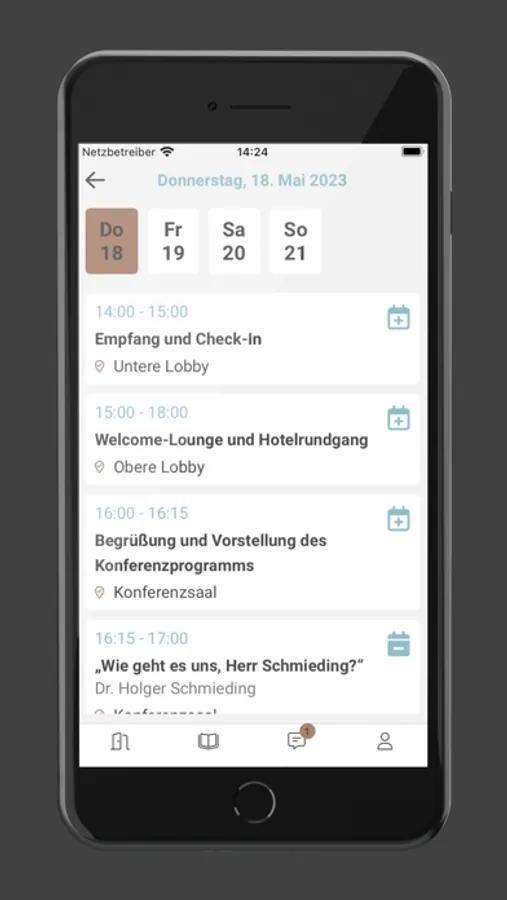 Mit der Obermark App bleiben Sie zu allen Themen aktuell informiert. Sie können jederzeit Informationen zum Programm abrufen, sich Ihre persönliche Agenda erstellen und mit anderen Teilnehmenden in Kontakt treten.