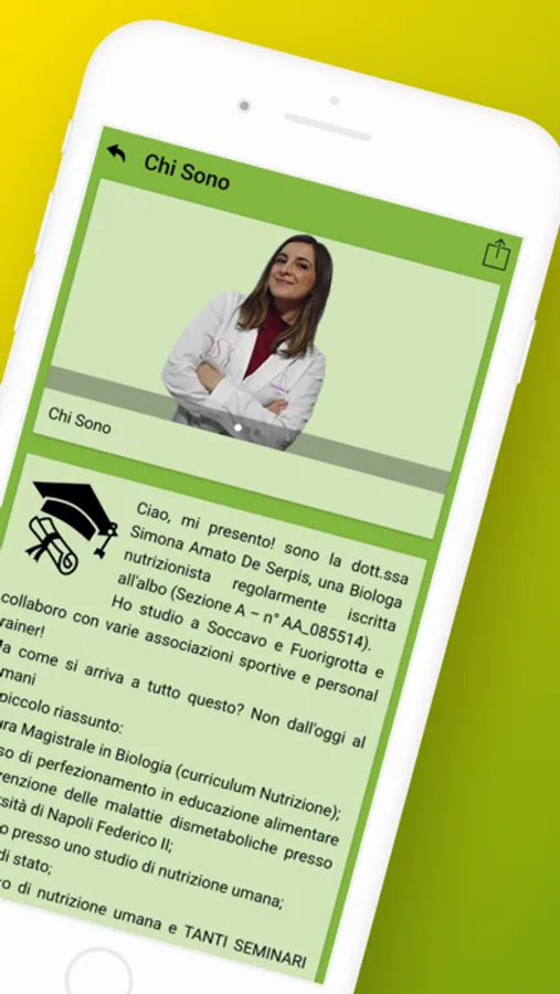 Ciao, mi presento! sono la dott.ssa Simona Amato De Serpis, una Biologa nutrizionista regolarmente iscritta all'albo (Sezione A – n° AA_085514).