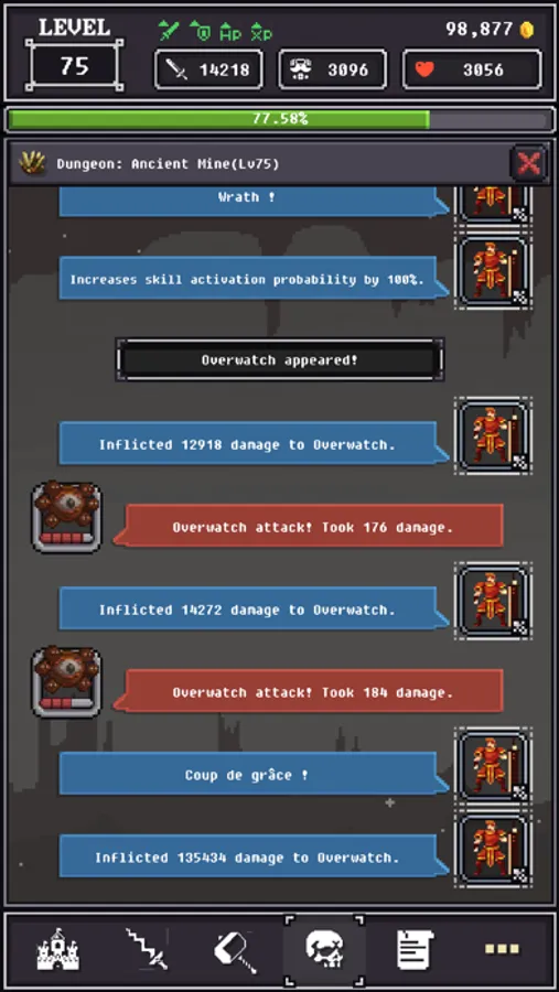 Strengthen your adventurers through battles in dungeons.