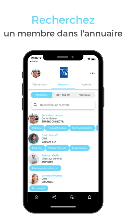 Recherchez facilement un membre de la communauté par nom, prénom, entreprise, compétence, localisation... L'essentiel pour élargir votre réseau !