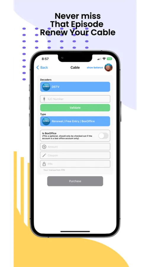 - Instant activation of DStv, GOtv, and Startimes subscriptions.