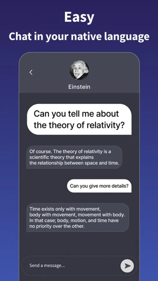 You can find the answer to every question you have in ChatAs: Ai Chat & Character Ai. Whether you're a scientist who wants to write an article, a student who needs help with homework, or just someone who wants to chat with a friend. Thanks to advanced artificial intelligence, everything you are looking for is in this application.