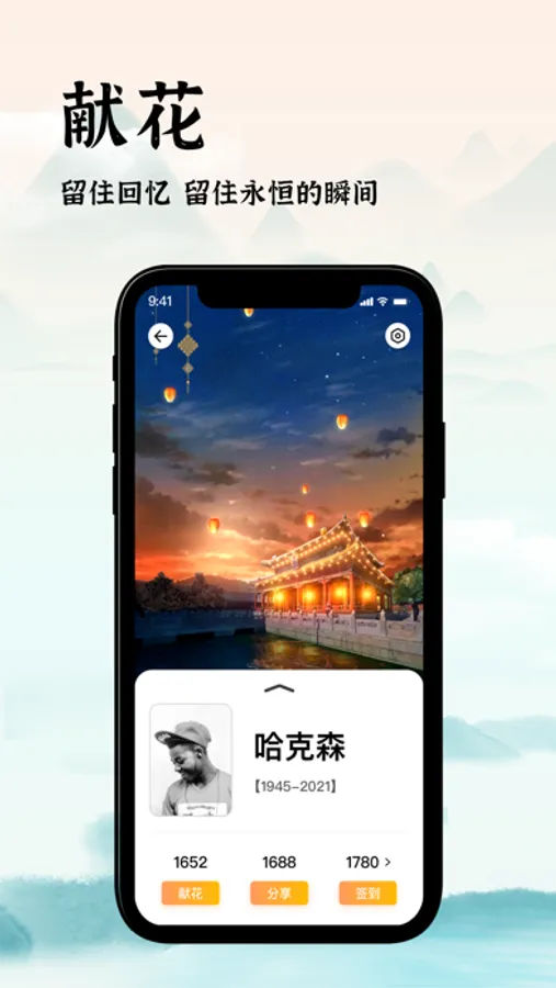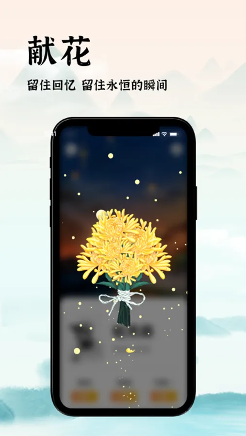 3.1.献花:用户可点击献花,为逝者献上一束花以表哀思,可分享该页面到社交平台