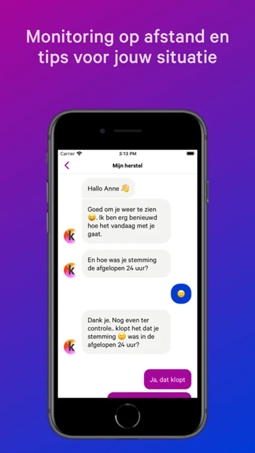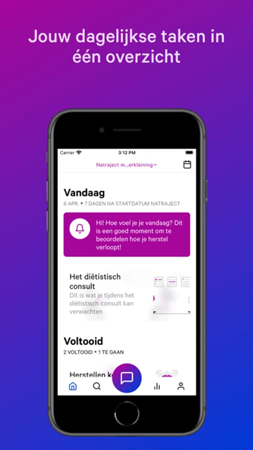 Changing your lifestyle in one go is not easy. The Ksyos Bariatrie App helps you to make a lasting change to your lifestyle. For example, you can use it to track your weight and fill in questionnaires. This way, we can see how you're doing and provide extra guidance when needed. You can also find all the important medical information there, such as information on exercise, lifestyle, and how to make permanent changes to your eating habits.