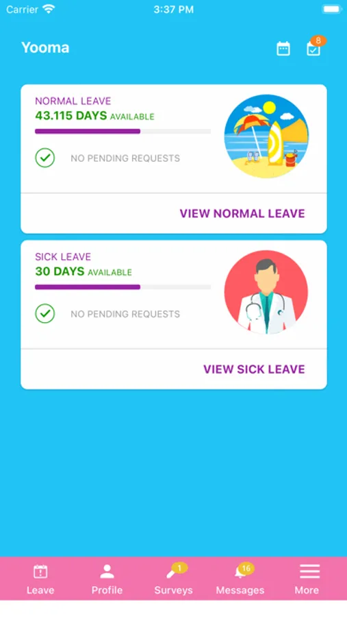 The Yooma HR App is used with an instance of Yooma HR which is a Human Resource Management System. In this app, you can request leave, approve/reject leave requests, complete surveys, etc.