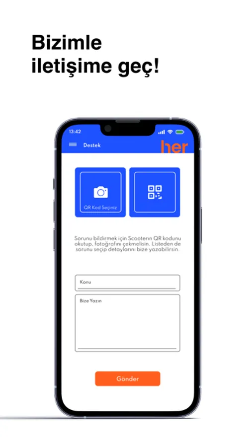 Her scooter; Kısa mesafeli şehir içi seyahat sağlayan elektrikli scooter filosudur. Her, şehrinde hızlı ve çevre dostu bir ulaşım alternatifidir.