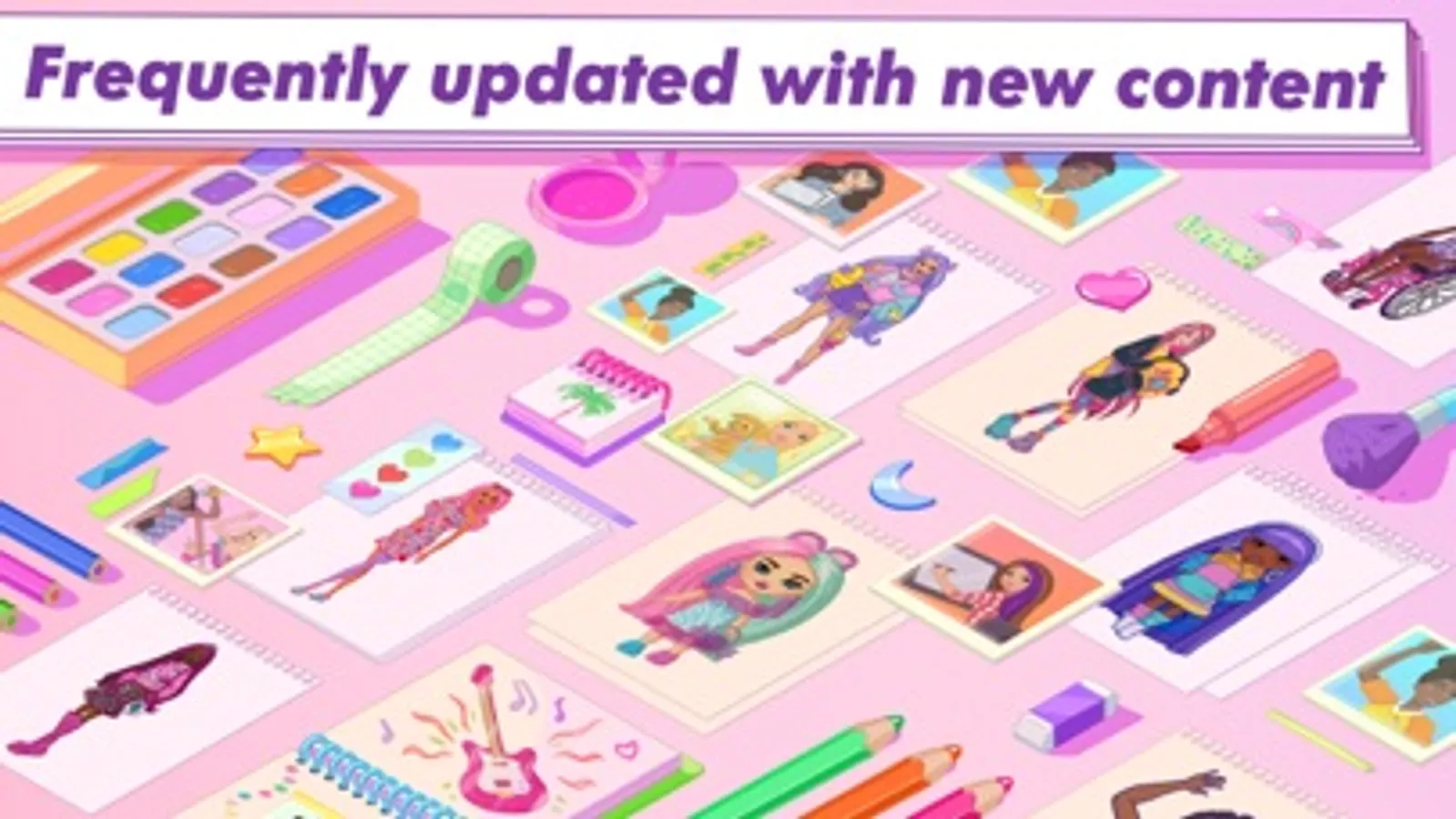 Join “Brooklyn” and “Malibu” on a colorful adventure in painting, sketching, designing, make-overs, and more! Explore an ever expanding studio of coloring books, tools, designs, locations and items. Bring Barbie’s memories to life with creative design challenges. Embark on a creative journey by customizing items and characters from your favorite Barbie movies and series, then save your designs as stickers and play with them in 2D locations. Earn unique rewards for completing design challenges, and use them to decorate your personal studio. Download any drawing as an image to your device, so you can show it off to your friends and family.
