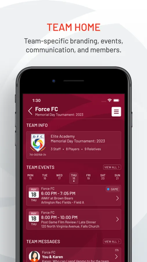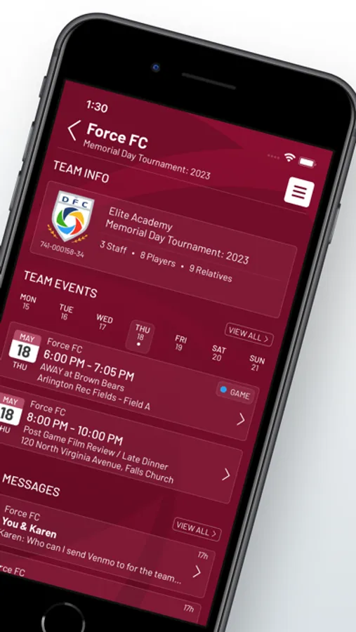 - Messaging capabilities between admins, team staff, parents, players, and officials