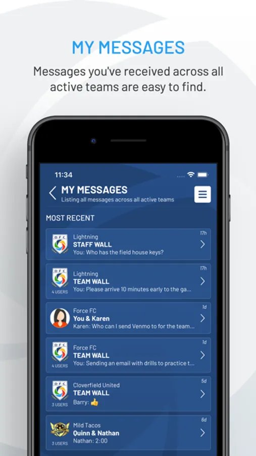 - Administrative control over which teams are visible on the app