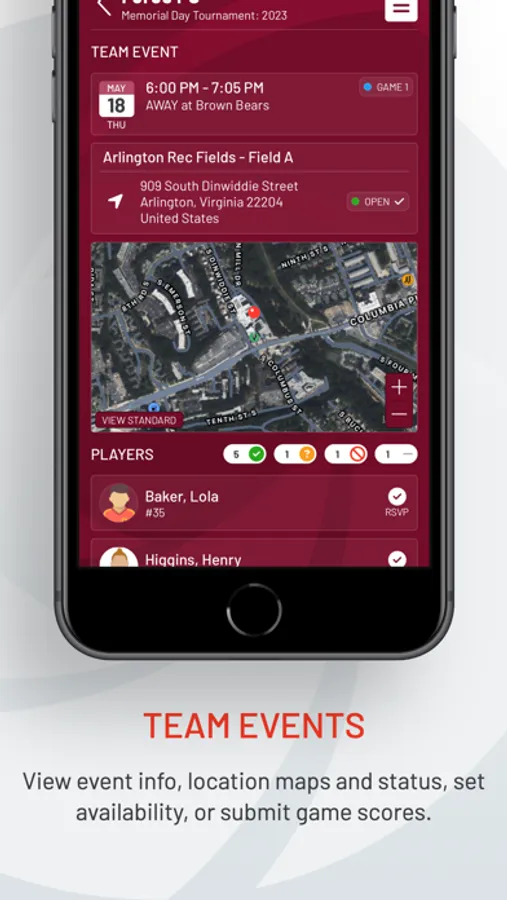 - Full integration with Demosphere’s sports management system, including teams, rosters, and schedules (practices, games, assignments and other events)