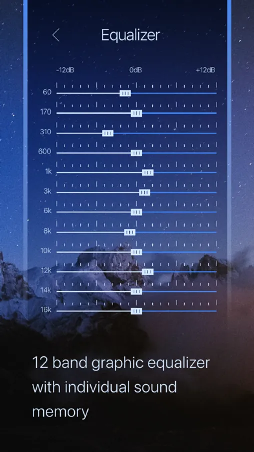 - Control precise frequency levels of sound playback with exclusive 12 band graphic equalizer.