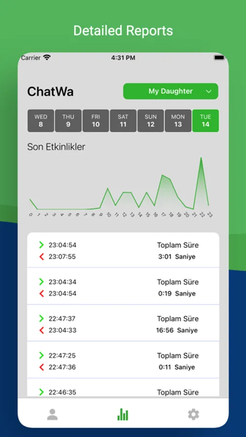 How much time do they spend chatting? Scroll through a comprehensive timeline to track last seen and see exactly when they were online at any given time. Check last seen and view your reports in monthly, weekly, or hourly forms.
