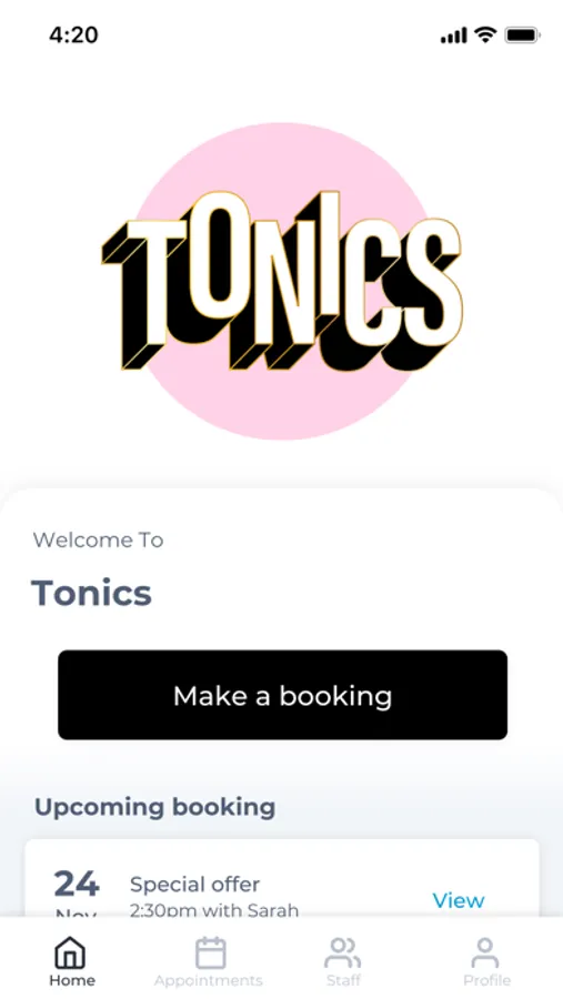 The Tonics app makes booking your appointments and managing your loyalty points even easier. You're just a few taps away from feeling good and looking great!