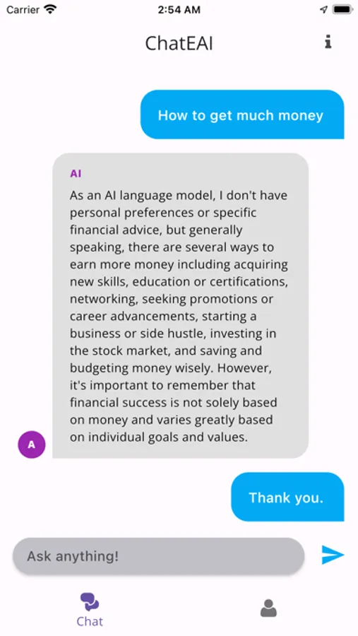 ChatEAI (Easy AI) is an app that allows you to easily chat with AI.