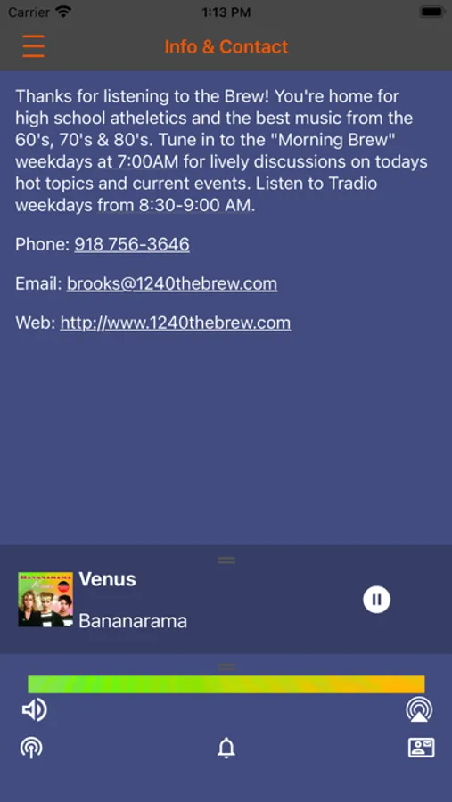 The Brew is a radio station in OKmulgee, Oklahoma playing the classic hits of the 60's, 70's, & 80's. We also feature a morning talk show "Brewer's Briefing" 8AM-9AM CST that discusses current events, news, culture, religion, etc. We do Okmulgee county high school sports and of course we host Tradio 9A-9:30A weekdays, where listeners buy, trade, sell and giveaway their stuff.