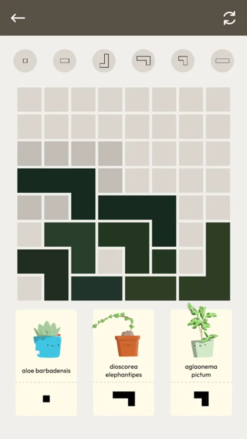 Carefully position houseplants in a room to create satisfying arrangements. Come back every day for a new puzzle with new plants!