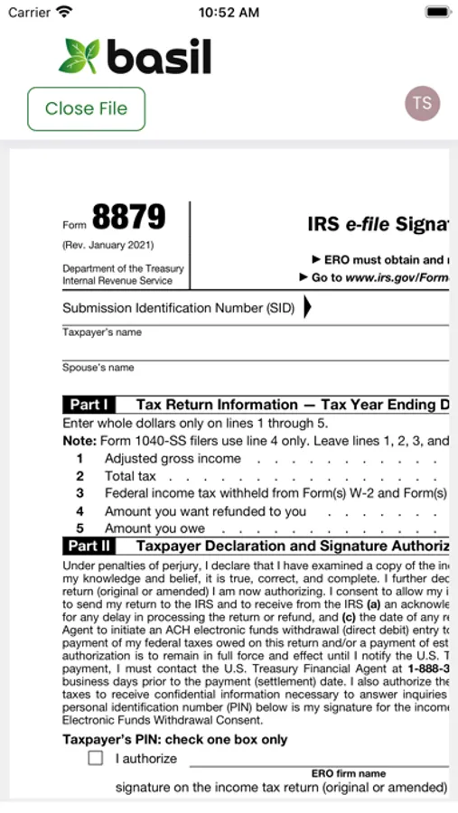 Mobile app to access Basil. Access all features including team management, file sync, client portal, document editing, eSignatures, and more.