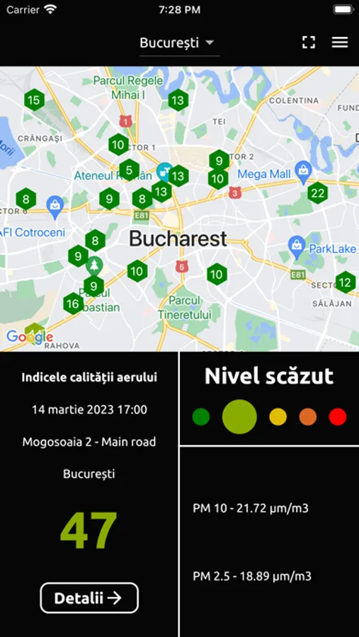 The information presented in this application, 24 hours a day, comes from the network of 41 sensors that measure the concentrations of PM2.5 and PM10 material particles.
