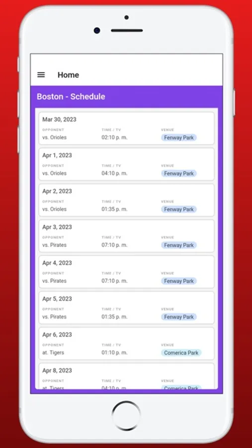Our app also includes the Boston baseball Schedule 2023, so you never miss a game! You can easily view the dates, times, and opponents for all upcoming Baseball, ensuring that you never miss a single pitch.