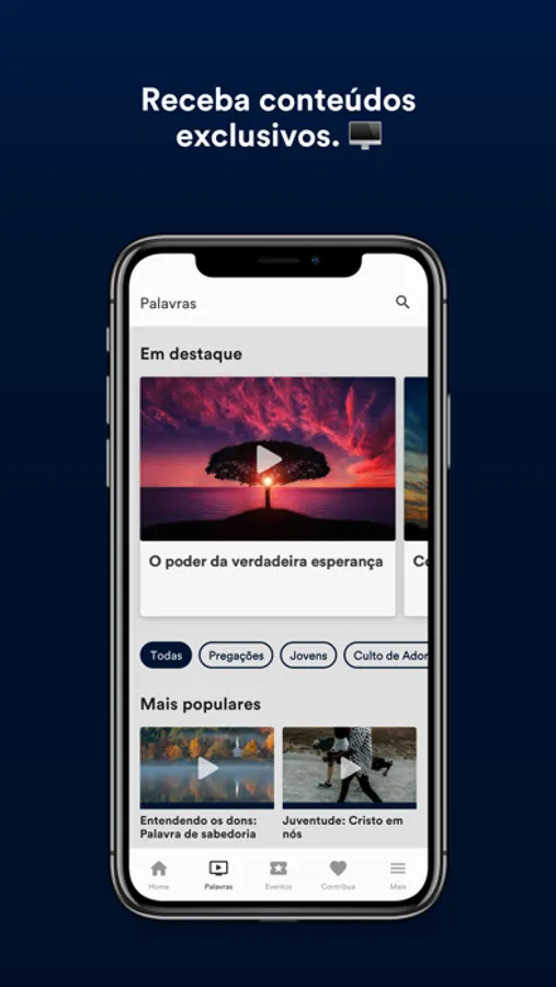 - Siga a agenda e fique por dentro de tudo que acontece na igreja, inscreva-se em eventos e tenha seus ingressos sempre com você.