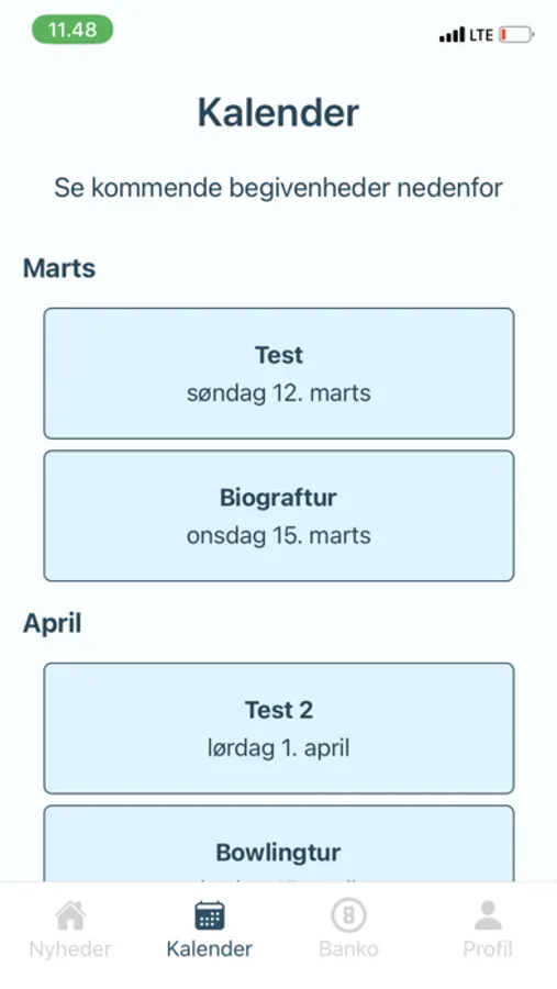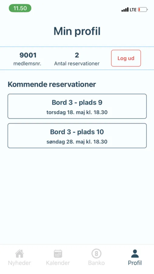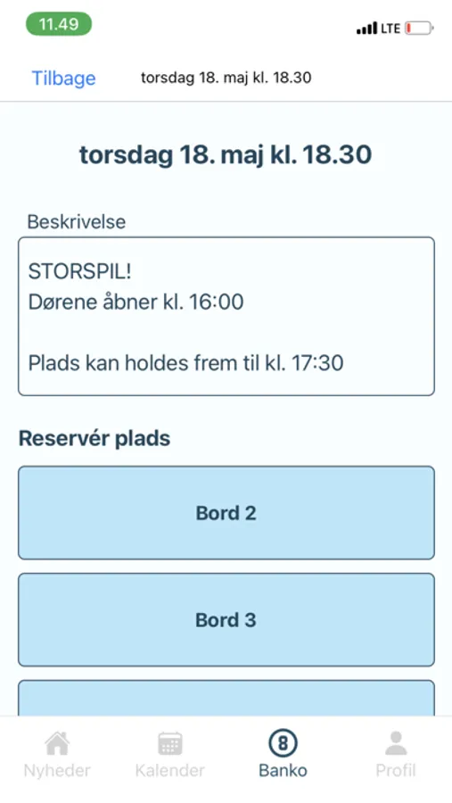 Vores helt egen banko app. Her kan du se kommende spil, arrangementer samt booke plads.