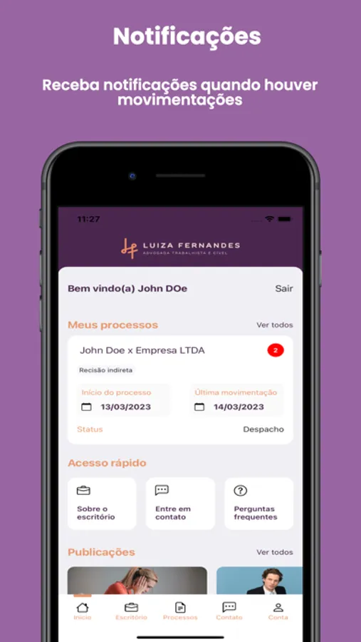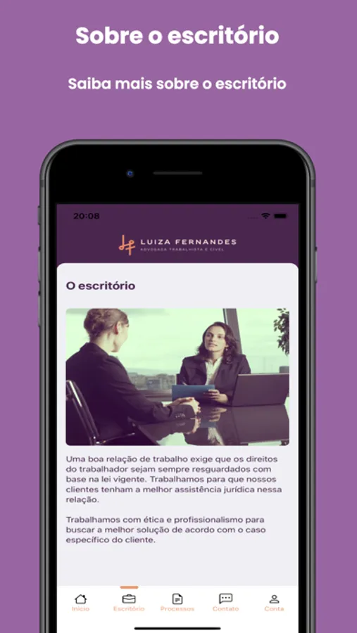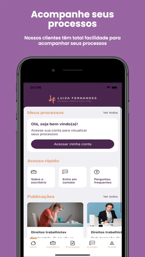 O aplicativo do nosso escritório de advocacia trabalhista é a solução ideal para quem busca agilidade e praticidade no acompanhamento dos seus processos. Com o nosso app, os clientes têm acesso fácil e rápido aos andamentos dos seus casos, de forma simples e intuitiva. Agora, você pode ficar por dentro de todas as atualizações, sem precisar sair de casa ou do escritório. Baixe agora mesmo e comece a desfrutar dos benefícios que a tecnologia pode trazer para a sua vida.