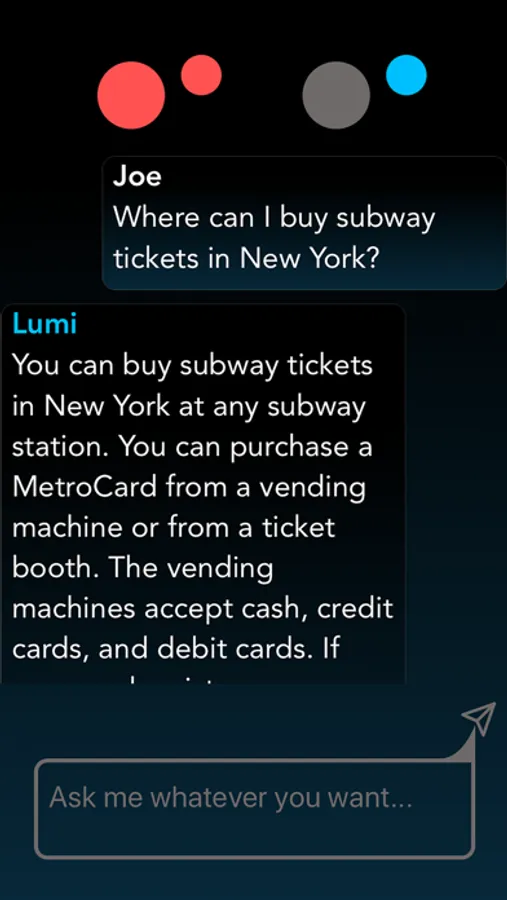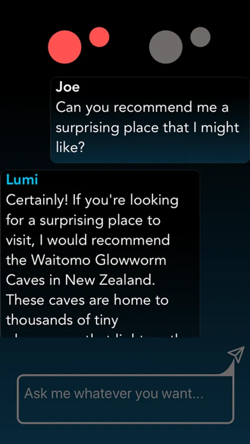 LUMI will be able to help you on many occasions during your day: write an email for you, help you in your work, suggest a restaurant you might like, a book that might interest you, tell you a story, give you ideas for your trips based on your interests, make complex calculations… LUMI is also compatible with VoiceOver and Smart Invert.