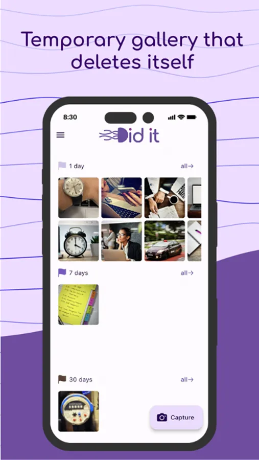 An app for capturing and viewing temporary photos, that will delete after a predefined amount of time. If you forget something frequently, take a photo for ensuring yourself and when the photo will be no more needed it will automatically delete itself.